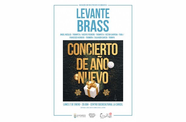 La agrupación encargada de interpretar este tradicional concierto será “Levante Brass”, cuyo repertorio comprende obras de artistas como Chaikovski, Koetsier, Falla, Jaime Texidor, Pascual Piqueras o Santiago Lope, además de los clásicos navideños.