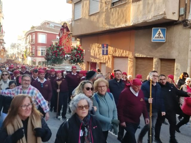 La Patrona de Totana ha regresado hoy a su ermita después de haber permanecido desde el pasado día 8 de diciembre en la ciudad con motivo de las fiestas patronales y de Navidad, coincidiendo con la jornada de festividad local; y tras dos años sin celebrarse en romería.
