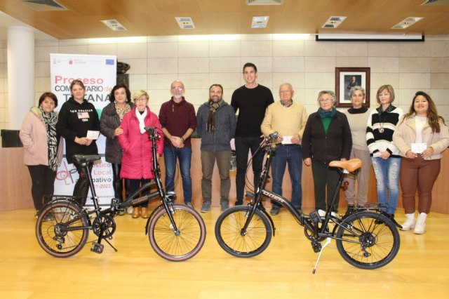 El concejal de Bienestar Social, Javier Baños, y el coordinador del programa de Diagnóstico Local Participativo que se desarrolla en Totana, Juan Antonio Martínez, hicieron entrega anoche de los diferentes premios del sorteo promovido entre los asistentes a las iniciativas enmarcadas en este proyecto que financia a un 90% el fondo Social Europeo y un 10% por la Consejería de Política Social de la Comunidad Autónoma.