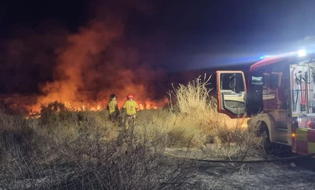 Efectivos de Bomberos del Parque de Lorca sofocan un incendio de matorral bajo en una zona existente entre la carretera de La Bastida y el Trasvase a su paso por Totana, con la inestimable colaboración de Protección Civil de Totana