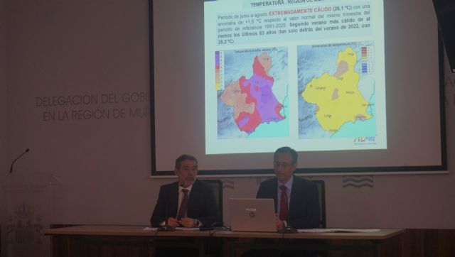 Francisco Jiménez ha acompañado al delegado territorial de AEMET, Juan Esteban Palenzuela, en la rueda de prensa del balance estacional de un verano en el que la media de las temperaturas máximas del trimestre fue 32,8 °C, con una anomalía de +1,4 °C, lo que supone el cuarto valor más alto, junto al del verano de 1994, de, al menos, los últimos 62 años.