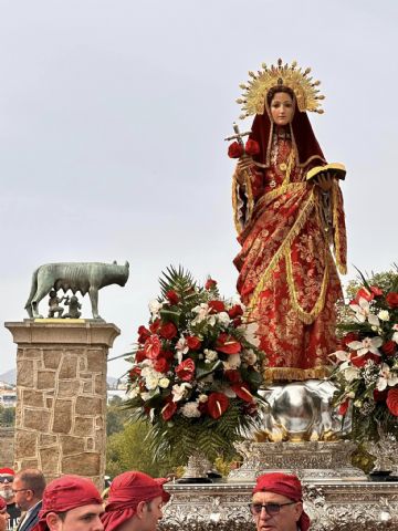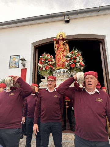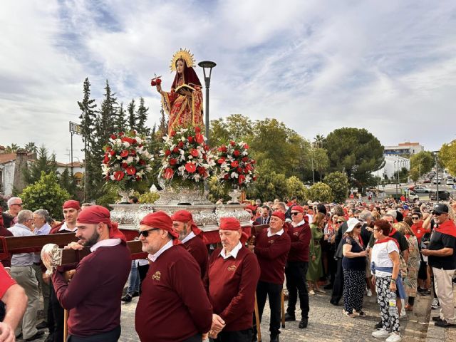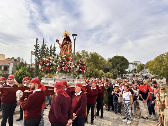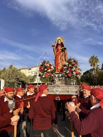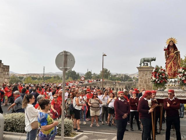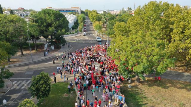 Un fin del camino muy especial ya que, a los peregrinos que han realizado el trayecto a pie se ha unido la imagen de Santa Eulalia de Mérida, Patrona de Totana, que hacía su salida desde la Parroquia de los Milagros, en Nueva Ciudad, sobre las 10 de la mañana.