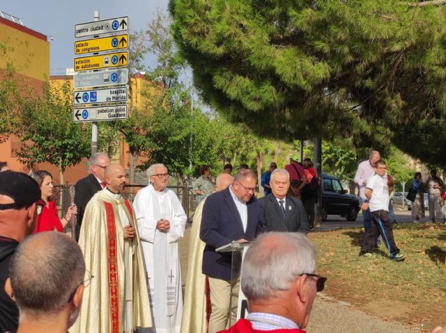 Por su parte, el alcalde de Totana y presidente de la Fundación La Santa, Juan Pagán, ha agradecido las palabras de su homólogo emeritense agradeciendo el recibimiento de la ciudad de Mérida «traemos a Mérida nuestro bien más preciado, que es nuestra Santa”, al tiempo que ha hecho una mención a quien inició este camino “Julián Larroya que inicio este camino en bicicletaen 2016 y que lo trasladó al Patronato y lo cogimos con mucho cariño”.
