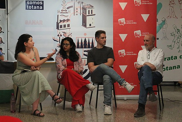 El encuentro, coordinado por la responsable de la red de jóvenes de IU-Verdes de la Región de Murcia Laura Carrillo, contó con la presencia de Margarita Guerrero, Directora General del INJUVE y del concejal y portavoz del grupo municipal de Ganar Totana-IU, Pedro José Sánchez Pérez.