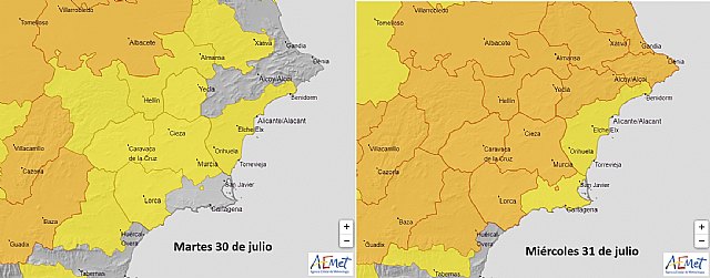 Estos son los avisos provisionales en la Región de Murcia para martes y miércoles: