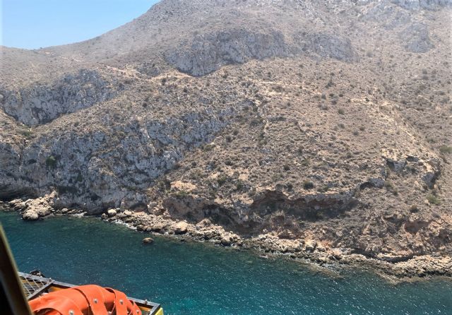 Servicios de emergencia han rescatado, evacuado por aire y trasladado al hospital a un hombre que precisaba asistencia sanitaria tras desembarcar de una patera en en una zona rocosa de la costa cerca de Cabo Cope, en Águilas.