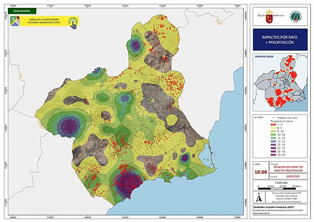 Durante el año 2023 se produjeron en la Región de Murcia 32 incendios forestales por rayo, y hasta esta fecha, en 2024, los conatos provocados por rayos han motivado 17 intervenciones de los servicios de extinción.