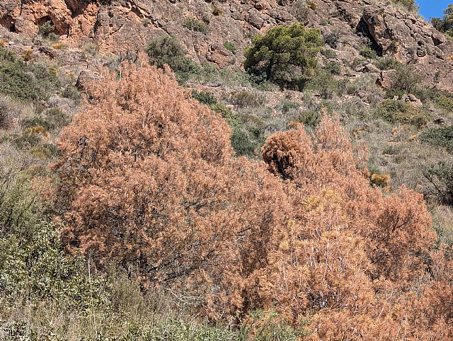 Mientras tanto, Sierra Espuña se seca y, por el momento, no se ha anunciado ninguna medida para paliar la sangría de pinos secos.