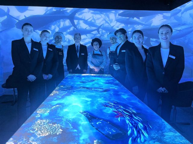 La Escuela de Hostelería y Turismo de La Flota, junto con la Escuela de Hostelería de Galdakao (Vizcaya) y el IES Simone Ortega (Móstoles), forma parte de un proyecto innovador, que contempla la elaboración de un menú por parte de los alumnos y profesores del IES La Flota y la degustación en un aula restaurante inmersiva 5.0 de este Centro de Excelencia, donde los comensales podrán interactuar con imágenes de productos, plantaciones, rincones de la Región y olores de la tierra.
