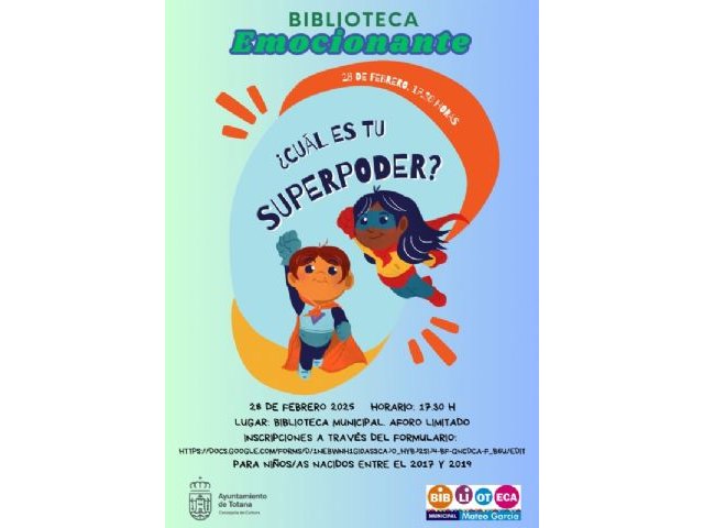 El taller que se celebrará el día 28 de febrero, con el nombre “¿Cuál es tu Superpoder?”, está dirigido a niños y niñas nacidos entre 2017 y 2019, en el que se trabajarán las fortalezas de los niños a través de un cuentacuentos.