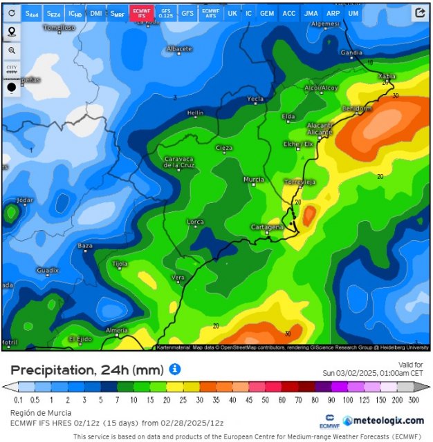 Los modelos meteorológicos siguen insistiendo en la inestabilización del tiempo en la Región de Murcia a partir de mañana.
