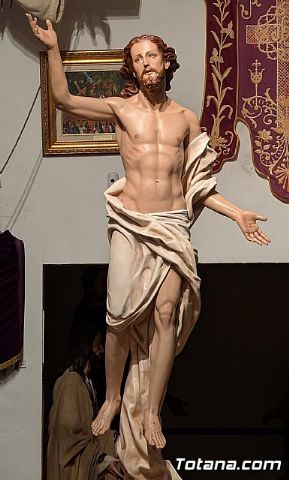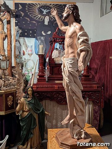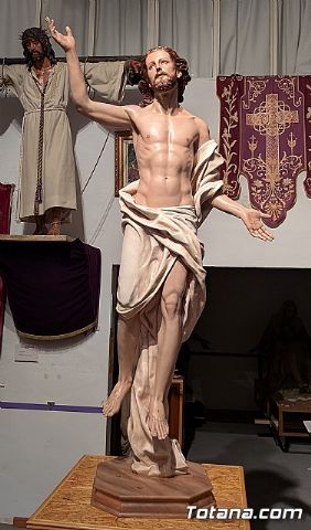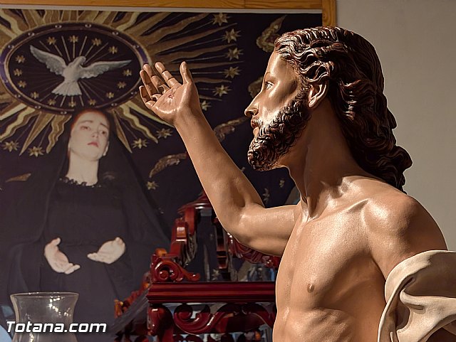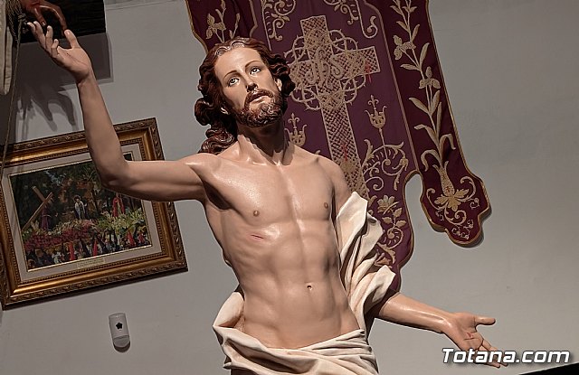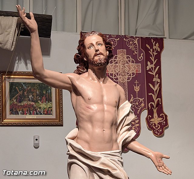 La Archicofradía de Nuestro Padre Jesús Nazareno de Alhama de Murcia presentó ayer con gran entusiasmo la nueva imagen de Jesús Resucitado, una majestuosa obra del joven escultor totanero Alberto Marín López. Esta escultura procesionará por primera vez el próximo Domingo de Resurrección y sustituye a la anterior realizada en los talleres de Olot.