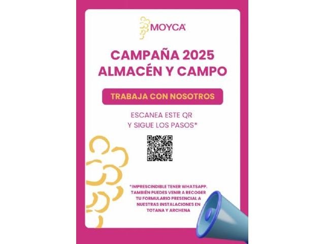 La Concejalía de Empleo del Ayuntamiento de Totana informa que Moyca, empresa especializada en uva de mesa sin semillas, ya está preparando la campaña 2025. La compañía ha abierto el proceso de contratación para reforzar su equipo de trabajo, con el que espera incorporar a más de 8.000 personas tanto para la recolección en campo como para el trabajo en los almacenes, donde se prepara el producto para su comercialización.