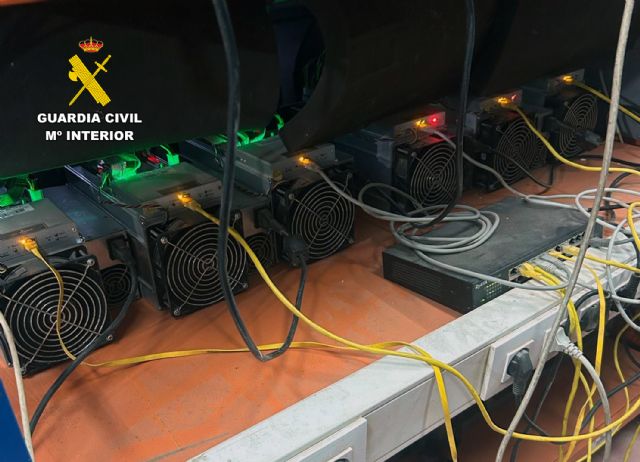 La Guardia Civil de la Región de Murcia ha desarrollado la operación 'Crip', una investigación en la que se ha desmantelado una instalación dedicada al minado de criptomonedas instalada en una explotación agrícola de Totana, que tenía una conexión ilícita a la red eléctrica.