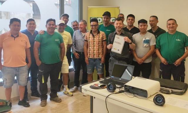 Los asistentes muy contentos de haber obtenido conocimiento en la conducción de las Carretillas