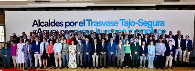 Alcaldes de 85 municipios de Murcia, Almería y Alicante que se abastecen con agua del trasvase del Tajo al Segura, entre los que se encontraba el regidor totanero, Juan Pagán, han participado este jueves en un acto institucional en defensa de esa infraestructura, que consideran fundamental e irrenunciable ante la amenaza de ser recortada a partir de 2027.