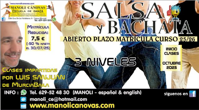 El período de inscripción con matrícula reducida al 50% será válido hasta el 30 de Julio. Para inscripciones o para más información, se puede acudir a la página manolicanovas.com, o bien por WhatsApp, llamando al 629-52 48 30.