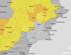 La Agencia Estatal de Meteorología ha emitido boletín de fenómenos meteorológicos adversos de nivel amarillo por lluvia (hasta 15 litros por metro cuadrado en una hora) y tormentas, hoy en el Altiplano y el Noroeste. Entre las 12 y las 22 horas.