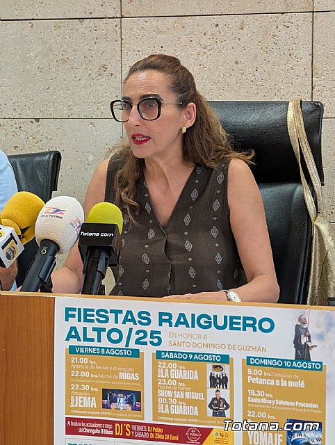 Este fin de semana, del 8 al 10 de agosto, la pedanía del Raiguero Alto celebrará sus tradicionales fiestas patronales en honor a Santo Domingo de Guzmán, organizadas por la Asociación de Vecinos con el apoyo del Ayuntamiento de Totana. La concejala de Festejos, Maribel Rubio, junto a José Antonio y Nati, representantes de la Asociación, han presentado hoy el programa de actividades, invitando a todos los vecinos de Totana y sus pedanías a disfrutar de un fin de semana lleno de diversión y buena compañía.