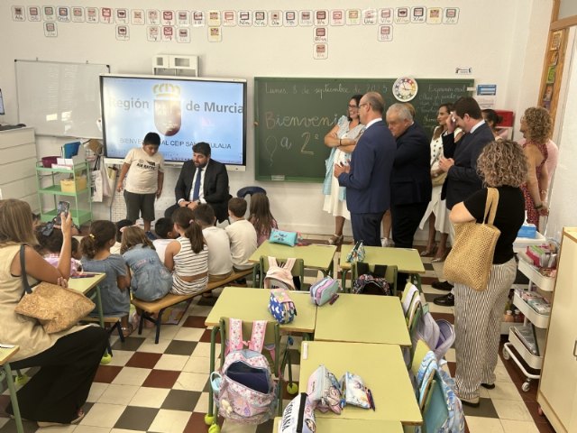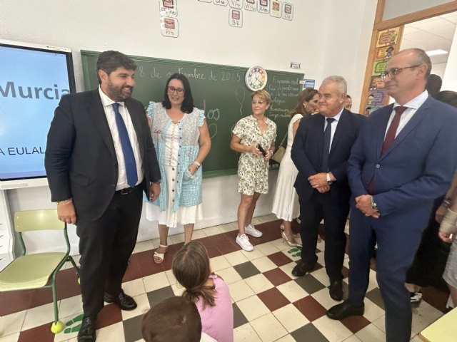 El presidente de la Comunidad Autónoma, Fernando López Miras, visitó hoy el CEIP Santa Eulalia con el fin de conocer de primera mano el resultado de la finalización de las obras de climatización del centro de Educación Infantil y Primaria, coincidiendo con la apertura oficial del curso escolar 2025/26 en la Región de Murcia.