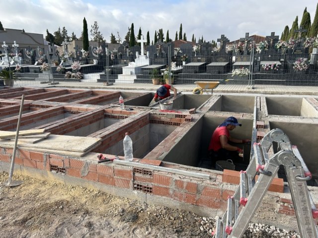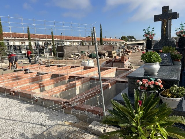 La Concejalía de Obras e Infraestructuras mantiene a buen ritmo las obras de construcción de 120 nuevos nichos y 24 fosas en el Cementerio Municipal “Nuestra Señora del Carmen”, que se prolongarán hasta el próximo mes de octubre.