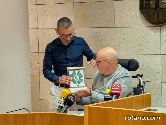 El salón de plenos del Ayuntamiento de Totana acogió hoy un emotivo acto que puso el broche final al gran evento solidario celebrado el fin de semana del 25 y 26 de octubre en favor de la Asociación ELA Región de Murcia. Durante el acto se entregó un cheque por un importe total de 7.647,15 euros, recaudados gracias a la respuesta masiva de los vecinos de Totana y de toda la Región de Murcia.