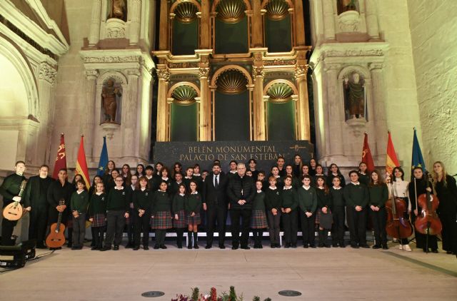 El presidente del Gobierno de la Región de Murcia, Fernando López Miras, inauguró hoy el belén monumental del Palacio de San Esteban, realizado por la Asociación Belenista de Fuente Álamo con la colaboración de la Agrupación Belenista José de Nazaret de La Arboleja (Murcia). El acto estuvo amenizado por villancicos que interpretó el coro del Colegio Jesuitinas de Murcia.