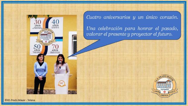 El pasado 22 de diciembre, el IES Prado Mayor acogió el acto de clausura de las conmemoraciones vinculadas a sus distintos aniversarios. Lejos de abordarse como efemérides independientes, estas celebraciones fueron planteadas como capítulos de una misma trayectoria educativa. En este marco, la charla impartida por Diego Jesús Romera González, profesor del departamento de Religión del centro, ofreció un recorrido riguroso y accesible por la historia del instituto.