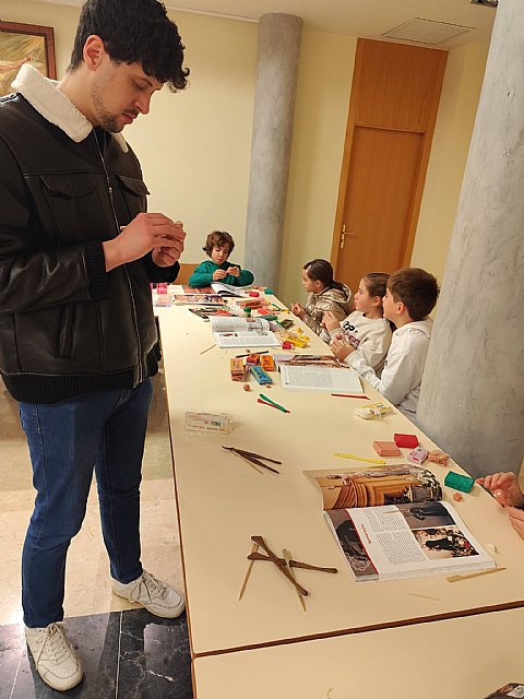 La Vocalía de Formación del Cabildo Superior de Procesiones de Totana ha celebrado con gran éxito, por cuarto año consecutivo, el Taller de Escultores Nazarenos. Esta iniciativa, que ya se ha consolidado como una cita ineludible para los más pequeños, fue impartida nuevamente por el joven y destacado escultor totanero Alberto Marín López, cuya trayectoria profesional comenzó precisamente experimentando con materiales sencillos en su infancia.