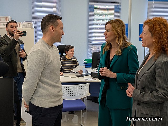 La consejera de Empresa, Empleo y Economía Social, Marisa López Aragón, visitó hoy la Oficina de Empleo de Totana para conocer el trabajo que realiza su personal técnico, al que definió como un servicio “esencial” por su labor de atención, orientación y acompañamiento a quienes buscan empleo o una mejora laboral.