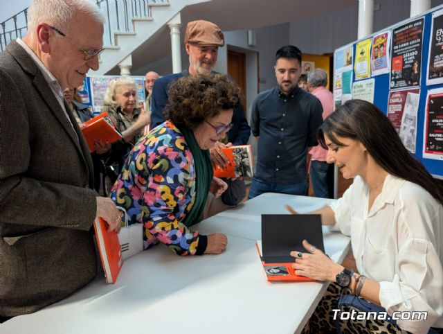 "Gracias, Carmen, por venir", dijo Aránega. "Y gracias también a Editorial Crítica y a nuestro amigo y librero de confianza Daniel Martínez Meca", de la Librería Faro, que vendió ejemplares a la salida para que la autora los firmara.